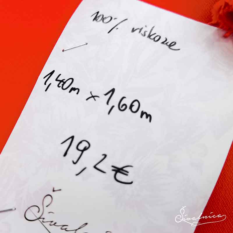 Velikost kosa in sestava materiala sta označeni na drugi fotografiji.