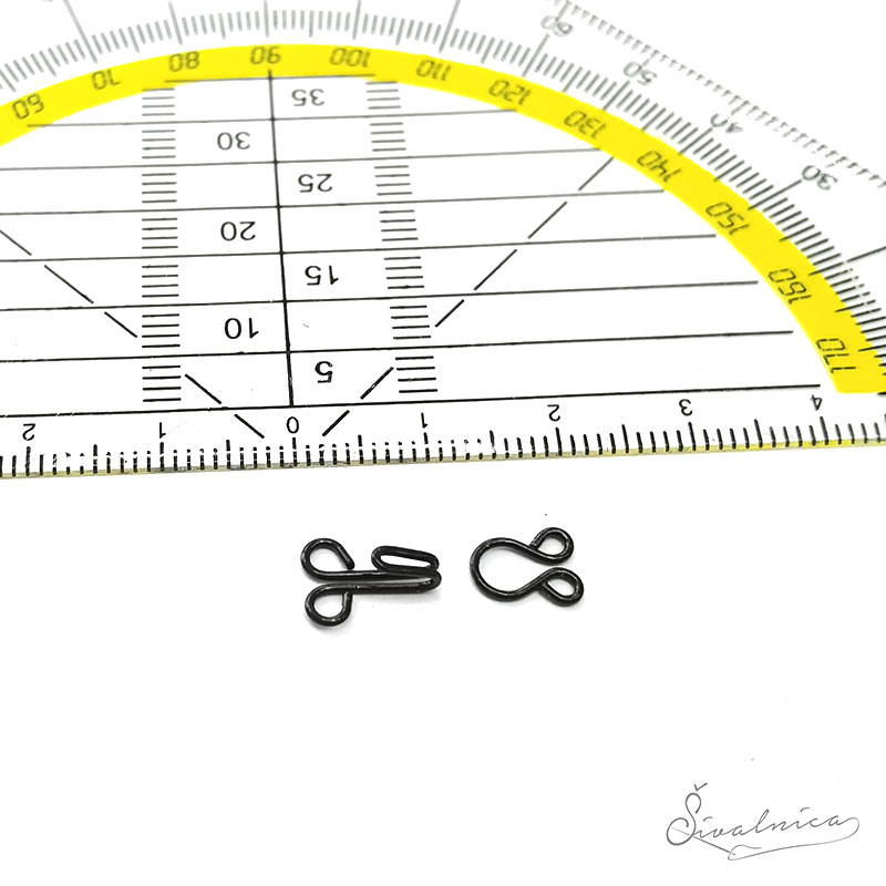 Kovinski kaveljček lahko uporabimo za zapenjanje manjši delov oblačila. Šivanje je ročno. Na oblačilo ju pritrdimo z ročnimi vbodi skozi majhni zanki na straneh.