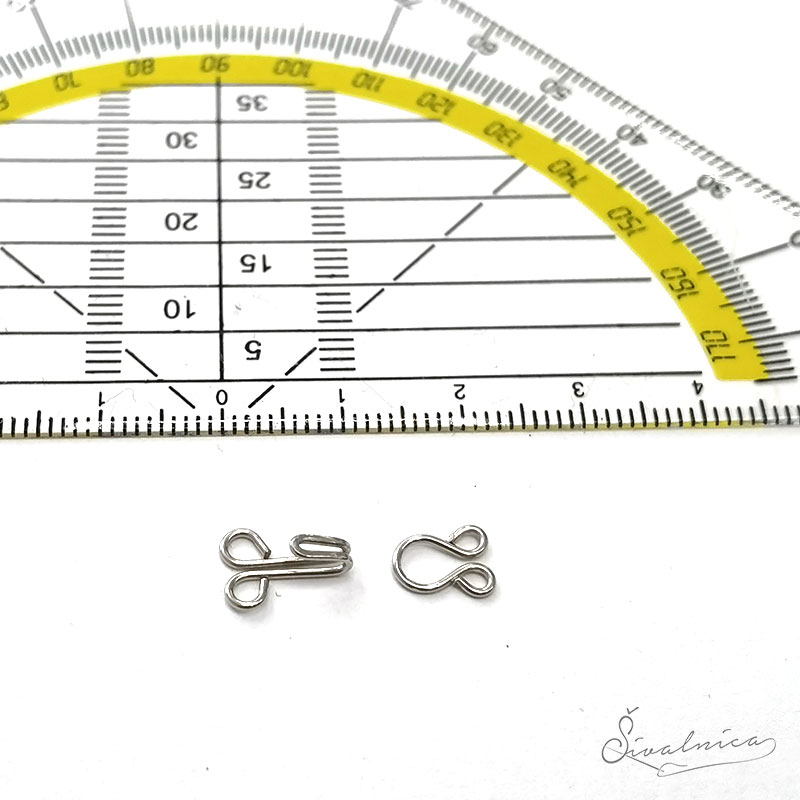 Kovinski kaveljček lahko uporabimo za zapenjanje manjši delov oblačila. Šivanje je ročno. Na oblačilo ju pritrdimo z ročnimi vbodi skozi majhni zanki na straneh.