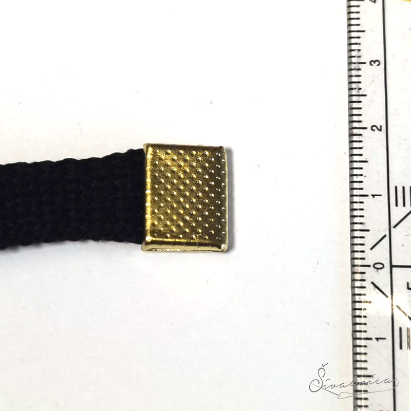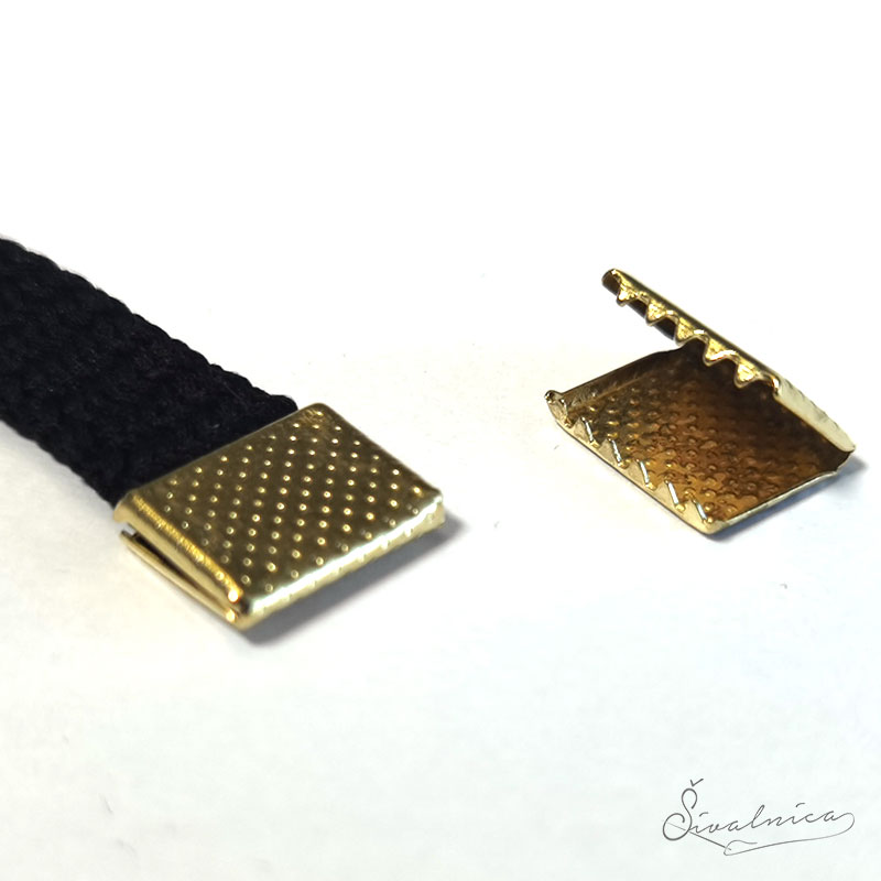 Ploščati vrvi lahko dodaš tudi elegantne kovinske zaključke. Zaključek le nastaviš na konec vrvi, ter ga stisneš s kleščami. Če ne želiš, da bi se na zaključkih poznal odtis klešč, potem vstavi med klešče in zaključek tanjši košček blaga.